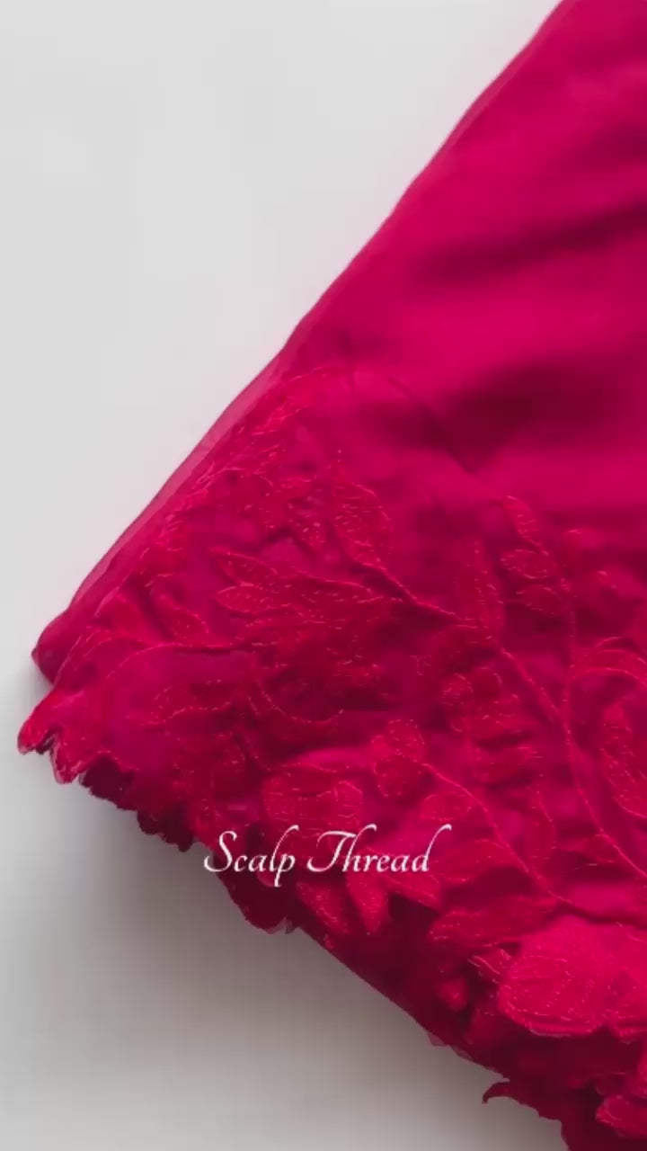 Crafted in pure soft organza, this saree features intricate multi-thread scallop embroidery that adds a rich designer finish. The detailed floral border enhances its elegance while maintaining a graceful, flowy silhouette. Lightweight and smooth in texture, it offers a beautiful drape perfect for festive occasions and evening gatherings. The premium craftsmanship ensures a refined and luxurious appeal. Paired with a matching running organza blouse piece, this ensemble creates a perfectly coordinated look. A timeless statement piece from our exclusive designer collection.